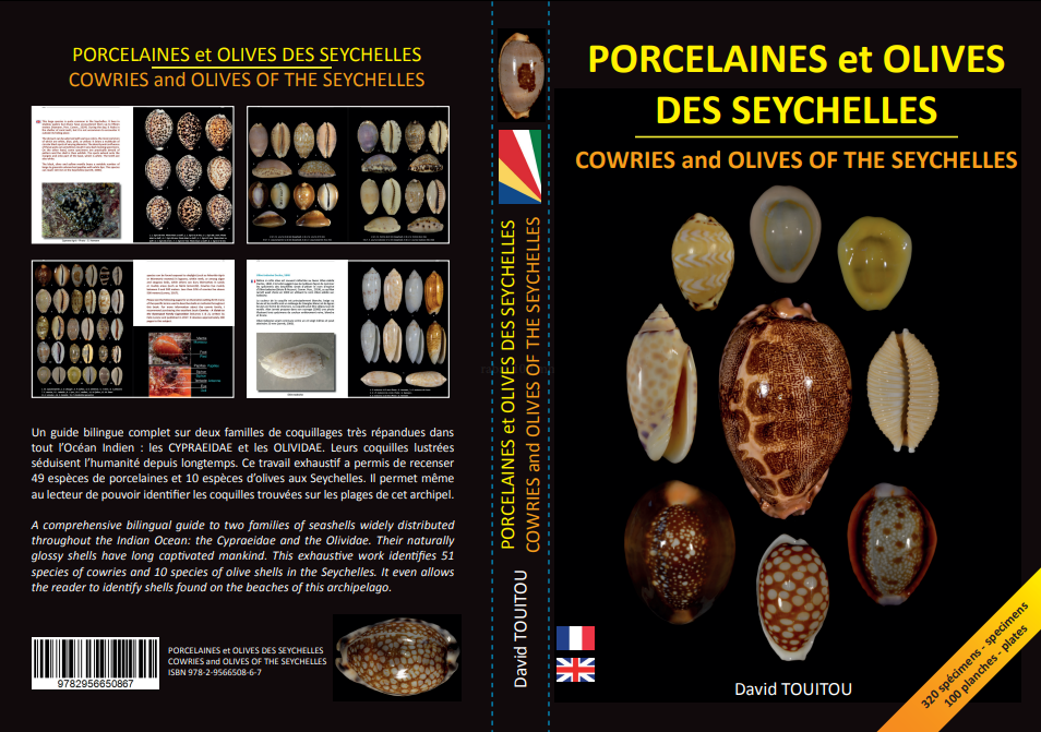 CONE SHELLS OF THE SEYCHELLES (V1) DAVID TOUITOU Language : English - OUT OF PRINT Year of Publication : 2019 ; ISBN 978-2-956650812 Number of pages : 173 ; Number of color plates : 38 Addendum (english - february 2022) |