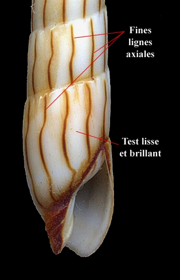 Pas de sculpture spirale.Cette espèce assez répandue dans le monde semble plutôt rare en Polynésie française.