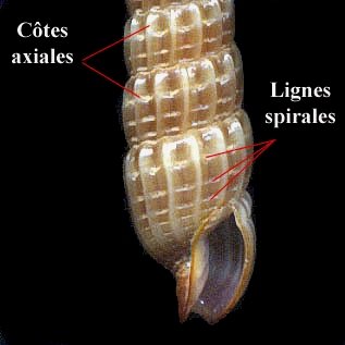 Une bande claire est délimitée entre la suture et la première ligne spirale.
