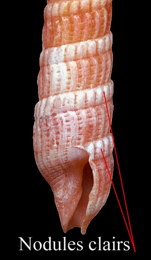 Red-Brown to orange colored, this species as a rather small size in French Polynesia. The spiral ribs make under the suture a ligne made of clear nodules.