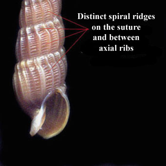 Elle est souvent confondue avec T.nitida et T.succincta car elle partage le même habitat. La sculpture spirale présente un sillon sous sutural généralement bien marqué par de profondes ponctuations entre les rides axiales et le sillon. De nombreuses fines lignes spirales, sont bien visibles sur la suture et entre les rides axiales, sans les traverser. L'ouverture allongée a une columelle très étroite et un callus pariétal épais.